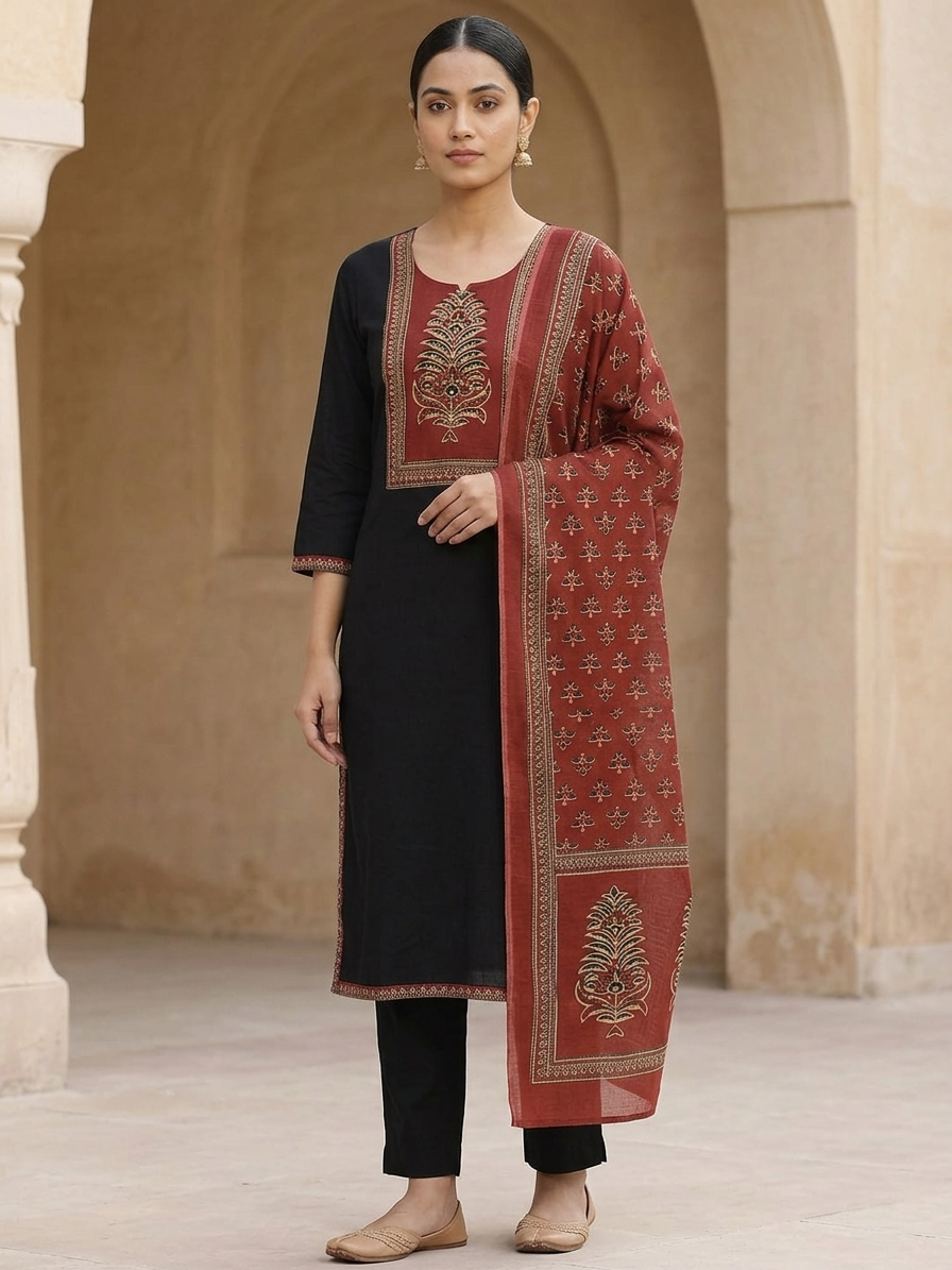 Our products are crafted using comfort-first fabrics such as cotton blends, silk blends, Dola silk, and other breathable materials. Fabric details are clearly mentioned on each product page.